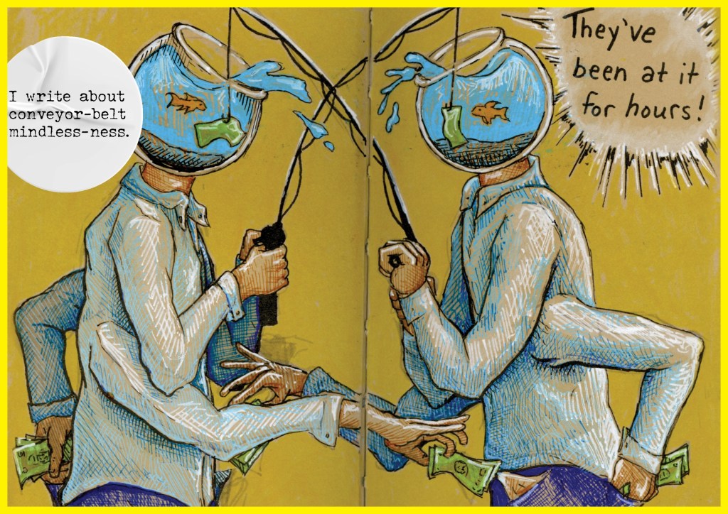 Social isolation, addiction, psychiatry, the American healthcare system, sexuality, and the existential vacuum are among the themes explored. The comic synthesizes non-western philosophies for a comparative approach that validates the pervasive sensation among much of America’s youth that something is terribly wrong. Leading with humor, the project serves as a biting, laugh-out-loud satire both compulsively readable and infinitely layered. It assures “lost souls” that they aren’t crazy and recognizes “Utopian Dreaming” as a powerful mode of resistance to explore cultural alternatives.